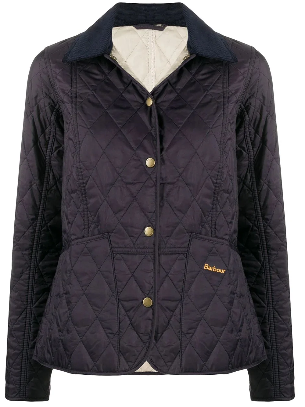 Summer Liddesdale corduroy-collar quilted jacket Dark blue quilted-effect buttoned jacket from Barbour featuring a quilted effect, an embroidered logo to the front, a classic collar, a front button fastening, long sleeves, front pockets and a padded interior. Imported Composition Outer: Polyamide 100% Lining: Polyamide 100%, Polyester 100% Washing instructions Machine Wash