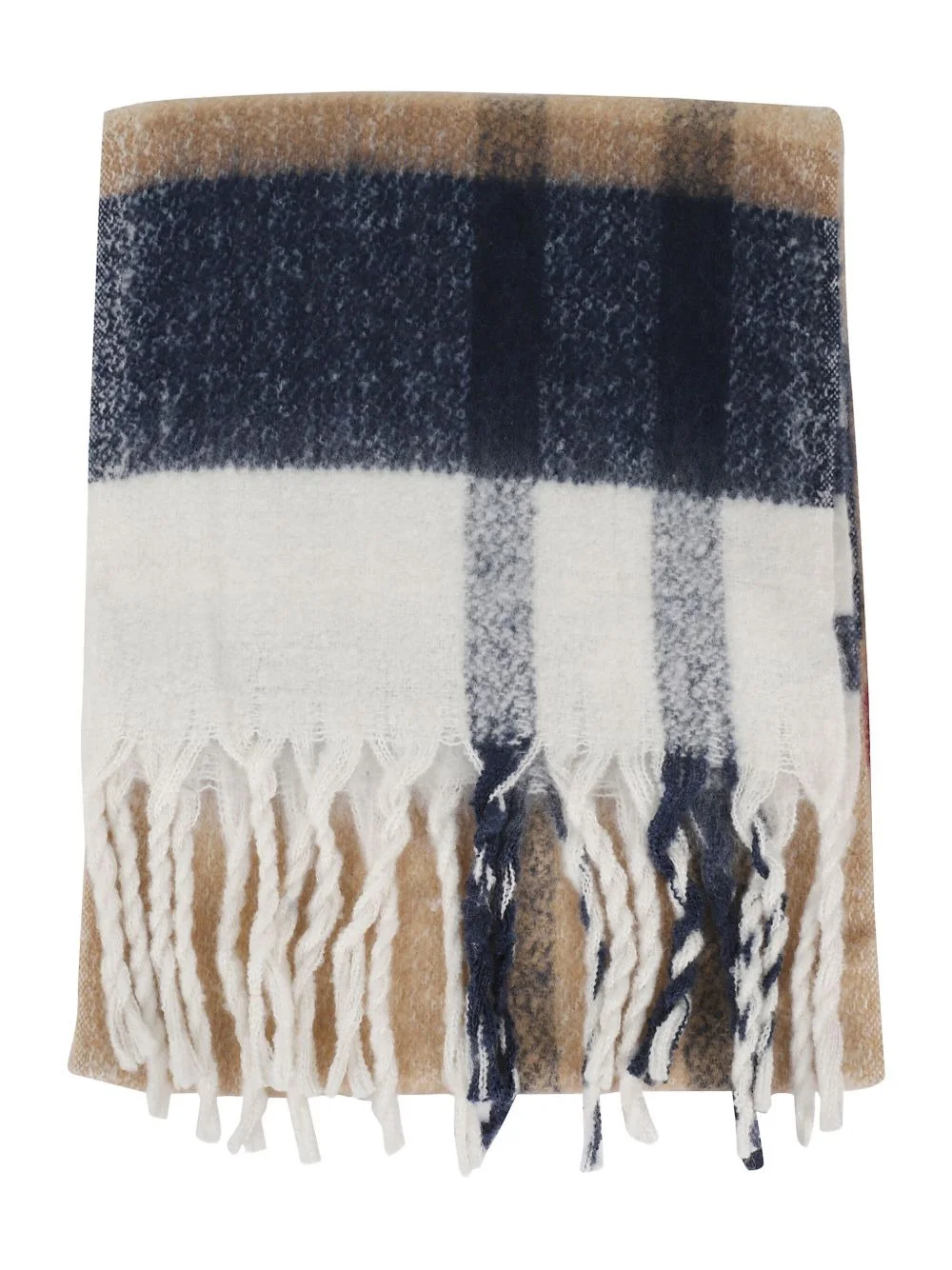 tartan-pattern fringed scarf Highlights - Beige/navy blue - Tartan pattern - Fringed trim Imported Composition Fabric 100% Washing instructions Read Manufacturer Guidelines