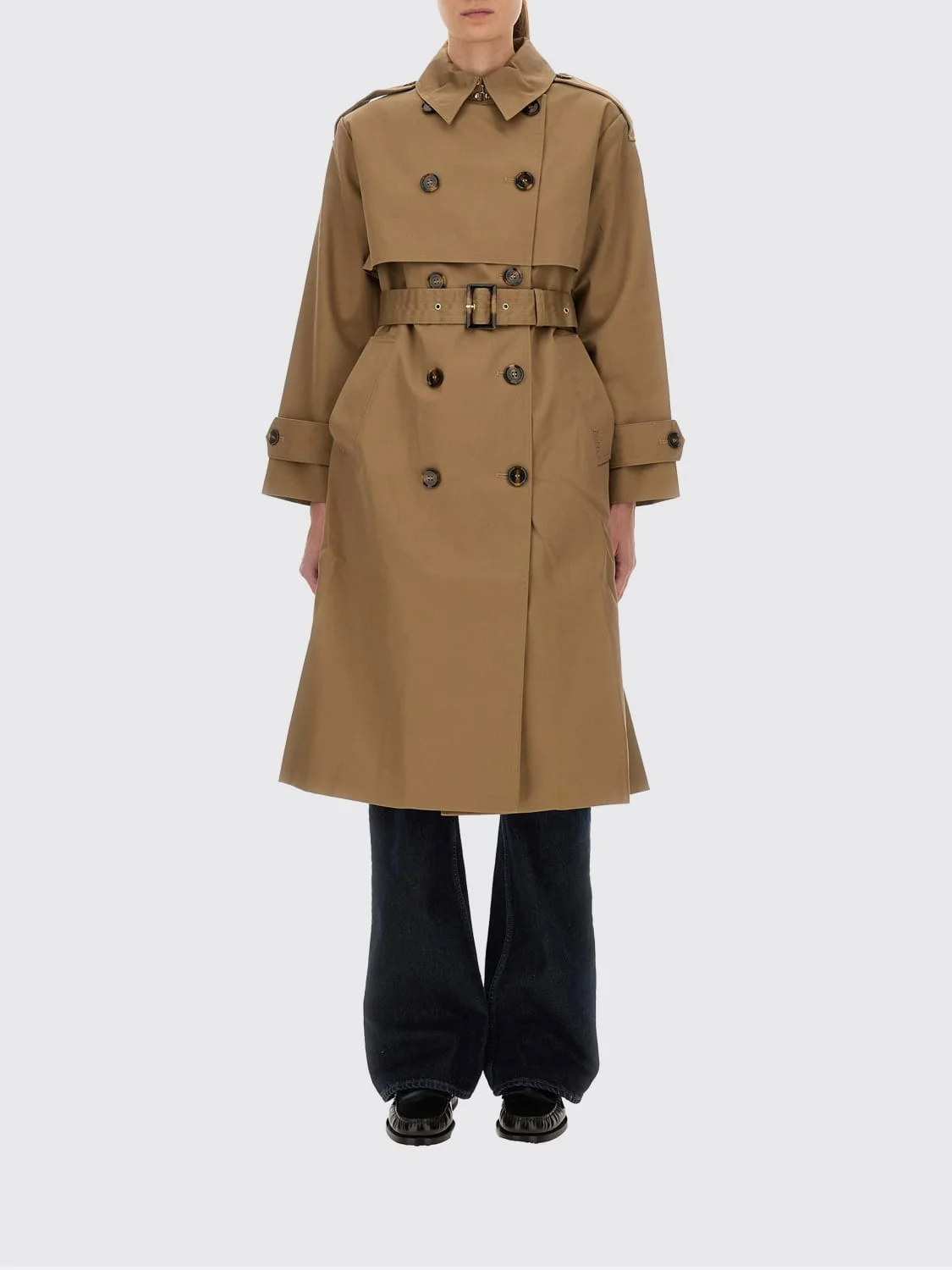DESCRIPTION - Style: Classic - Model: Double-breasted - Neck: Classic - Shoulders: Regular, With patches - Sleeves: Long - Closure: With buttons - Pockets: America - Waist: With adjustable belt - Bottom: With back slit, With straight hemline - Length: Knee-high jackets - Materials: Technical fabric - Pattern: Plain-colored DETAILS AND CARE Composition POLYESTER SIZE AND FIT Sizes not available Size and fit Regular fit Designer code: LSP0246 BE31 Giglio Code: H86435 Designer: Barbour Collection: Barbour Woman Category: Clothing Barbour