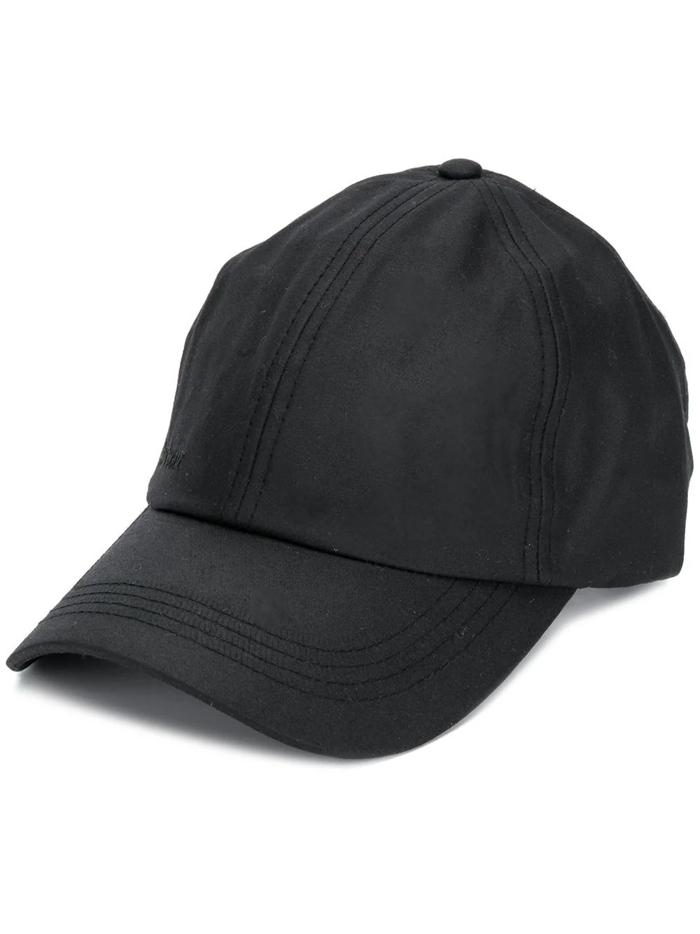 wax sports cap Black cotton blend wax sports cap from Barbour featuring stitched panels, a curved peak and an adjustable fastening. Made in United Kingdom Composition Outer: Cotton 100%, Wax 100% Lining: Cotton 78%, Polyester 22% SIZE & FIT Measurement BRIM 2.75 in(7 cm) CIRCUMFERENCE 21.25 in(54 cm)