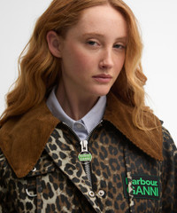 DETAILS Leopard Print Waxed Anorak Barbour x GANNI collaboration Waxed cotton Oversized corduroy collar Hooded Tartan elbow patches Snap closure with concealed zipper Dual-branded ring pull Chest welt pockets with flaps Barbour x GANNI co-branded silicone patch Tartan lining COMPOSITION & CARE 100% Cotton Do not wash. Sponge clean only