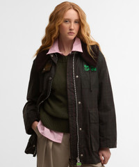 DETAILS Tartan Waxed Duffle Coat Barbour x GANNI collaboration Waxed cotton Tonal elbow patches Oversized corduroy collar Hooded Snap closure with concealed zipper Dual-branded ring pull Bellow pockets Barbour x GANNI co-branded silicone patch Tartan lining COMPOSITION & CARE 100% Cotton Do not wash. Sponge clean only
