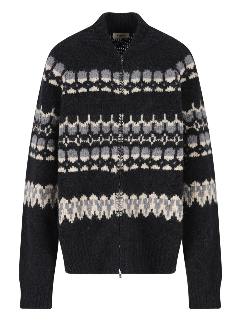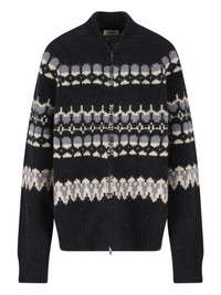 jacquard zip cardigan Highlights - Black - Jacquard pattern - High neck - Front zip closure - Long sleeves - Ribbed hem and cuffs Made in Italy Composition Mohair 51%, Polyamide 25%, Wool 22%, Modacrylic 2% Washing instructions Read Manufacturer Guidelines