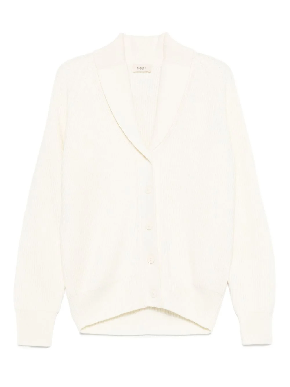 ribbed shawl-collar cardigan Highlights - Ivory - Ribbed knit - Shawl collar - Button front - Long sleeves - Straight hem Made in Italy Composition Wool 100% Washing instructions Dry Clean Only