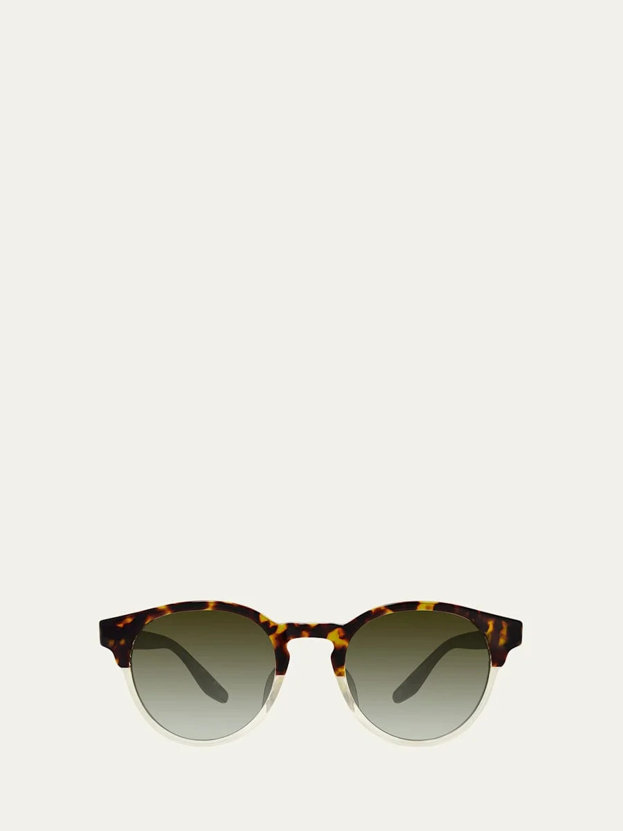 The "Beckford" round sunglasses from Barton Perreira feature twotone tortoiseshell frames. Eye/bridge/temple (in mm): 4922148 Gradient lenses Adjustable nose pads 100% UVA/UVB protection Acetate Spot clean Made in Japan