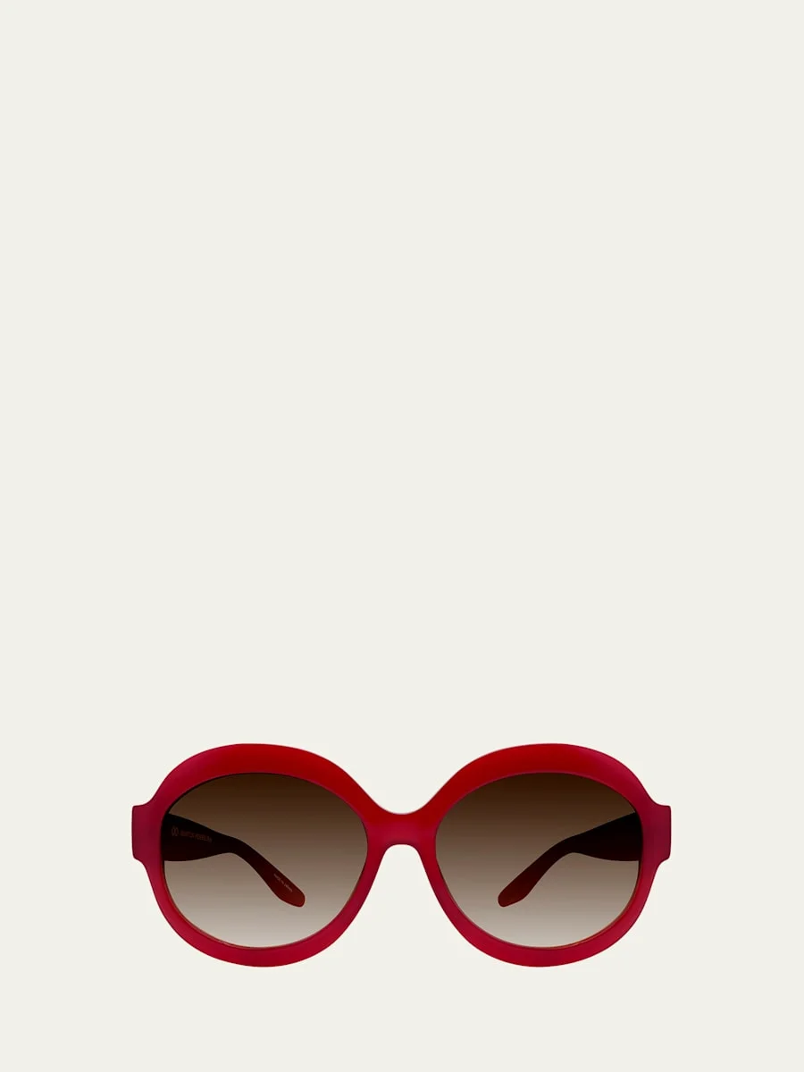 Barton Perreira "Orleandra" round sunglasses in zyl Eye/bridge/temple (in mm): 5917145 Gradient lenses Saddle nose bridge Thin, tapered arms Universal fit Zyl/titanium Wipe clean 100% UVA/UVB protection Made in Japan
