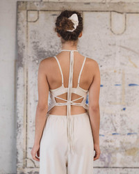 Product Details Wild silk wrap top Halter neck Open back Ties at neck and waist Model wears size S and is 172cm 100% Wild Silk Made in Turkiye Fiber origin – China Spun in China Woven in Turkiye Sewn in Turkiye Material Wild Silk Origin: China Certificates: Oeko-Tex - Wild silk is made by silkworms that live in the wild. Wild silkworms feed on and live in trees. - Wild silk is a lot more textured than regular silk. - Due to its short fiber length, wild silk is more comparable to wool. - It has the same positive attributes as silk. - The process of making wild silk is also known as non-violent, which is when the silk is processed without killing the silkworm. Once the moth leaves its cocoon, the silk is collected and processed into yarn.