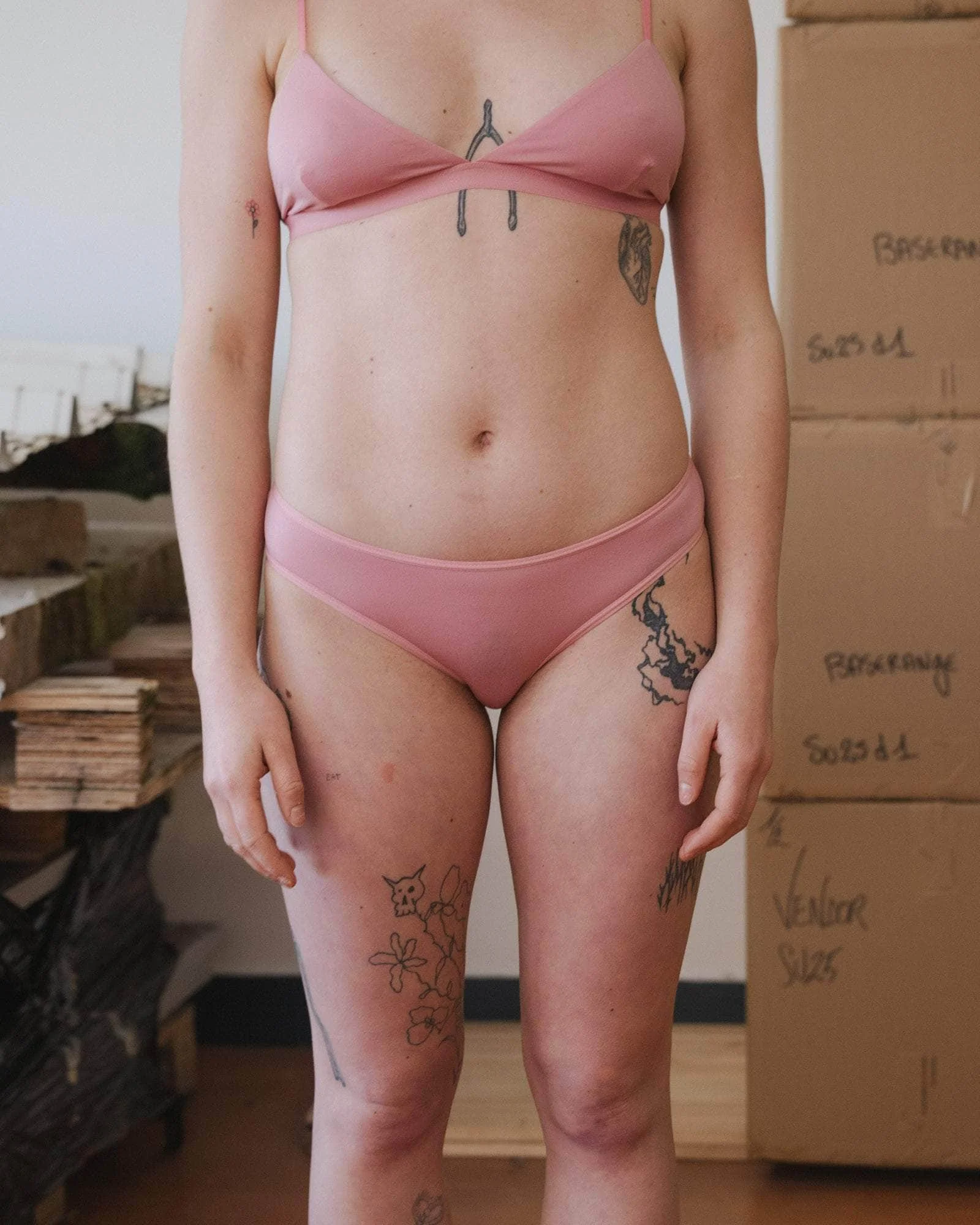 Product Details Bamboo lyocell underpant Elastic trim at waist and leg 97% Bamboo Lyocell 3% Elastane Made in Portugal Model wears a size S and is 167cm Material Lyocell Origin: China Certificates: FSC - Lyocell is a manmade fiber made of natural regenerated cellulose. - The lyocell process eliminates toxic chemicals and reactions and reduces air and water emissions. - Lyocell is made from traceable wood pulp harvested from FSC-certified farms. The farms have been established on land unsuitable for food crops or grazing. - Lyocell is made of eucalyptus or bamboo trees that don’t require irrigation or pesticides and grow fast. - Lyocell fiber production itself is more environmentally friendly than cotton due to its closed-loop process. This means that up to 99% of the water and solvents used are reused. - Manufacturing lyocell does not require bleach. - Lyocell fiber is stronger than viscose both when dry and wet. - Sea cell is a similar fiber made from seaweed and sea algae with therapeutic qualities.