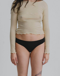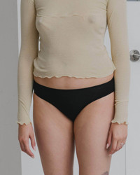 Product Details Bamboo lyocell underpant Elastic trim at waist and leg Model wears a size S 93% Bamboo Lyocell 7% Elastane Made in Portugal Fiber origin – China Spun in Portugal/Brazil Knitted in Portugal Sewn in Portugal Material Lyocell Origin: China Certificates: FSC - Lyocell is a manmade fiber made of natural regenerated cellulose. - The lyocell process eliminates toxic chemicals and reactions and reduces air and water emissions. - Lyocell is made from traceable wood pulp harvested from FSC-certified farms. The farms have been established on land unsuitable for food crops or grazing. - Lyocell is made of eucalyptus or bamboo trees that don’t require irrigation or pesticides and grow fast. - Lyocell fiber production itself is more environmentally friendly than cotton due to its closed-loop process. This means that up to 99% of the water and solvents used are reused. - Manufacturing lyocell does not require bleach. - Lyocell fiber is stronger than viscose both when dry and wet. - Sea cell is a similar fiber made from seaweed and sea algae with therapeutic qualities.