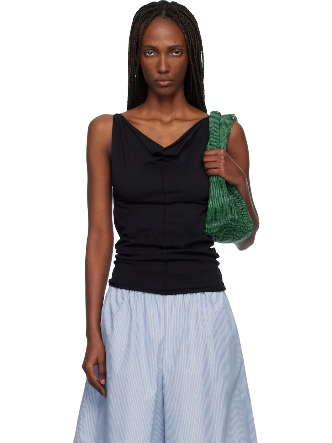 Recycled and Good Earth Cotton jersey tank top. · Cowl neck · Exposed seams at front, sides, and back Supplier color: Black 80% gec cotton, 20% recycled cotton. Made in Portugal 252922F111032