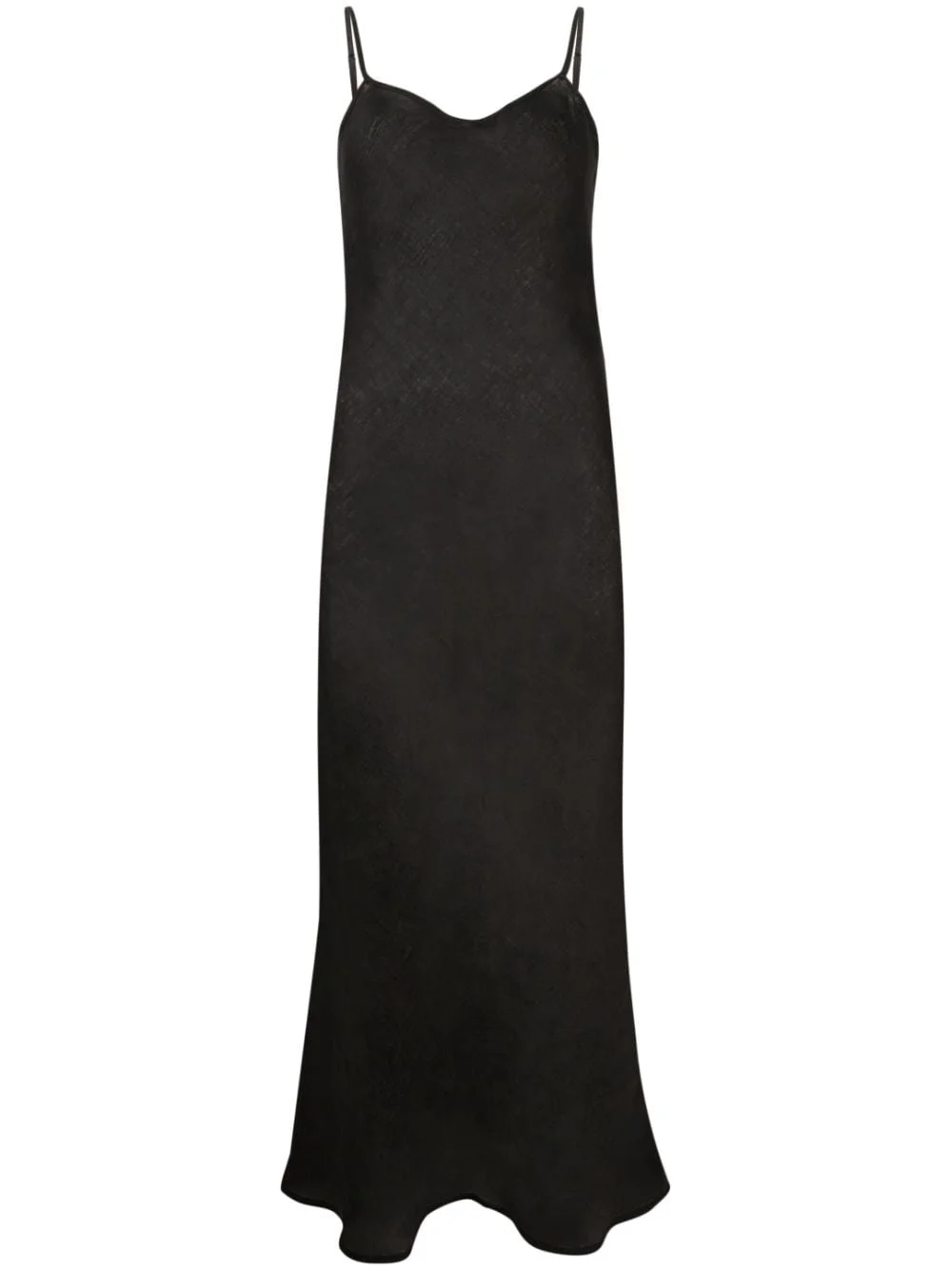 Dydine midi dress Baserange presents the Dydine midi dress in a bias cut and linen fabric. The garment is shaped for a fluid fit and has adjustable spaghetti straps for an optimal feel. Highlights - Black - Linen - Round neck - Spaghetti straps - Mid-length Imported Composition Linen/Flax 100% SIZE & FIT Model measurements Height 5 ft 10 in(1.77 m) Bust/Chest 31.49 in(80 cm) Hips 35.03 in(89 cm) Waist 23.22 in(59 cm) Measurement BUST 29.92 in(76 cm) LENGTH 43.7 in(111 cm) WAIST 35.43 in(90 cm) FittingInformation Designed for a slim fit that sits just away from the body offering a close yet comfortable fit The adjustable shoulder straps allow for a preferred fit when worn Made from a lightweight non-stretch fabric Washing instructions Machine Wash