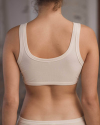 Product Details Organic cotton rib bra Heart shape embroidery with cut out at front Scoop neck Elastic trim at neckline and hem Undyed Model wears size S and is 172cm 91% Organic Cotton 9% Elastane Made in Portugal Fiber origin – Turkiye Spun in Turkiye Woven in Portugal Sewn in Portugal Material Organic cotton Origin: Brazil, India, Egypt Certificates: GOTS, Oeko-Tex, OCS 100 - Cotton is a natural seed fiber. - It is durable, breathable, absorbent, and soft. Cotton is ideal for dyeing and printing. The material is also biodegradable and hypoallergenic. - Nearly all cotton is grown in rotation. Rotation crops help with pest management and soil structure. - Cotton stalks in most of the world are utilised almost entirely and seeds are essentially never wasted. - Baserange sources organic cotton, as we want to ensure that no harmful chemicals are used in the production process, water consumption is controlled, water is not contaminated and workers' rights are also preserved. - Organic agriculture uses agronomic, biological, and mechanical techniques instead of synthetic methods. - Organic cotton supports good soil health and ecosystems and is not harmful to human health or the environment. No pesticides or fertilizers are used. Most of the organic cotton we use is also rain-fed and doesn’t require much irrigation.