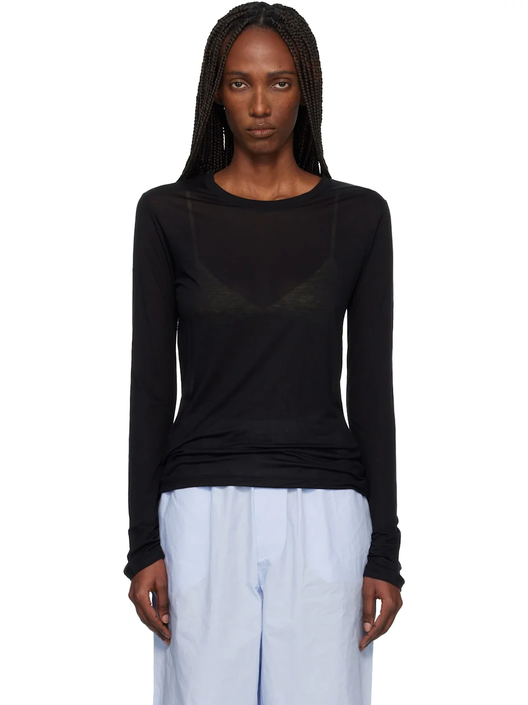 Semi-sheer lightweight bamboo jersey T-shirt. Rib-knit crewneck. Supplier color: Black 100% bamboo lyocell. Made in Portugal 261922F110051