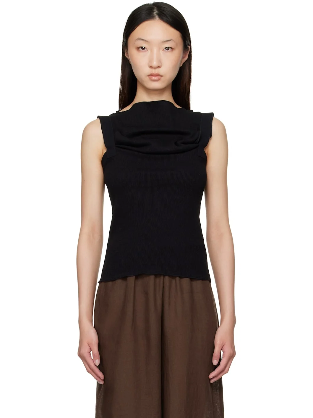 Ribbed recycled cotton- and cotton-blend jersey top. · GRS- and OEKO-TEX®-certified · Lettuce edge at boatneck and hem · Gathering at chest and back · Elasticized shoulder straps Supplier color: Black 60% recycled cotton, 40% cotton. Made in Portugal 252922F111008