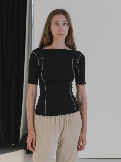 Product Details Organic cotton rib ¾ length sleeve tee Boatneck Exposed seams Lettuce edge at neckline and hems Runs small, consider sizing up Model wears size S and is 166cm 91% Organic Cotton 9% Elastane Made in Portugal Fiber origin – Turkiye Spun in Turkiye Woven in Portugal Sewn in Portugal Material Organic cotton Origin: Brazil, India, Egypt Certificates: GOTS, Oeko-Tex, OCS 100 - Cotton is a natural seed fiber. - It is durable, breathable, absorbent, and soft. Cotton is ideal for dyeing and printing. The material is also biodegradable and hypoallergenic. - Nearly all cotton is grown in rotation. Rotation crops help with pest management and soil structure. - Cotton stalks in most of the world are utilised almost entirely and seeds are essentially never wasted. - Baserange sources organic cotton, as we want to ensure that no harmful chemicals are used in the production process, water consumption is controlled, water is not contaminated and workers' rights are also preserved. - Organic agriculture uses agronomic, biological, and mechanical techniques instead of synthetic methods. - Organic cotton supports good soil health and ecosystems and is not harmful to human health or the environment. No pesticides or fertilizers are used. Most of the organic cotton we use is also rain-fed and doesn’t require much irrigation.