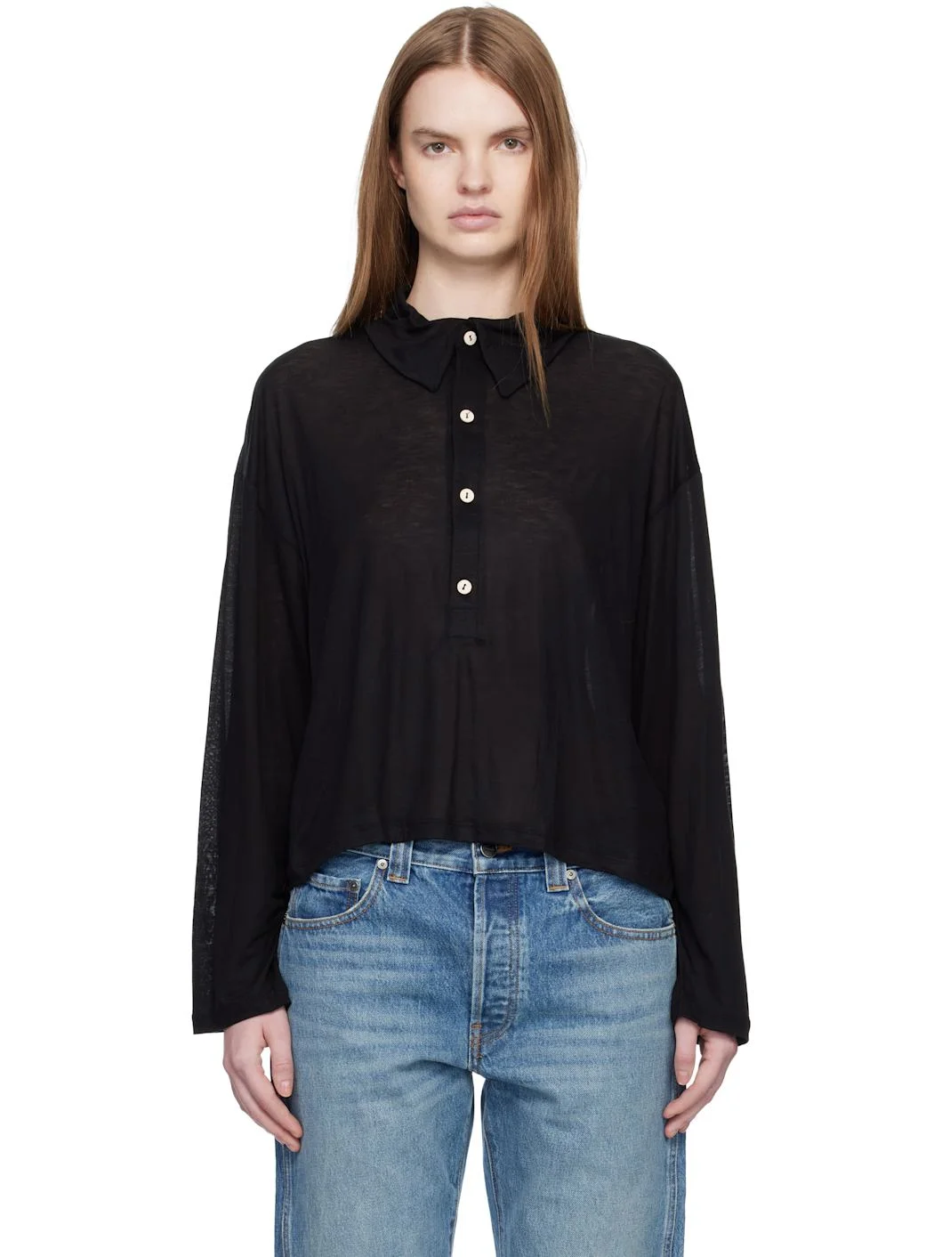 Semi-sheer bamboo lyocell jersey polo. · Certified FSC® bamboo · Spread collar · Four-button placket · Dropped shoulders Supplier color: Black 100% bamboo lyocell. Made in Portugal 252922F108001