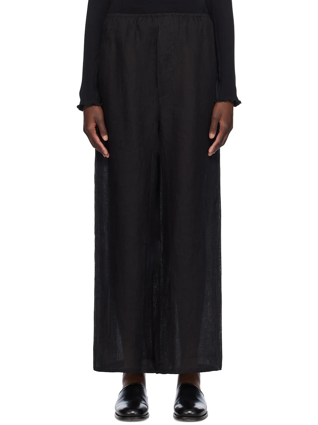 Semi-sheer Oeko-Tex®-certified linen hopsack trousers. · Breathable · Elasticized waistband · Mock-fly Supplier color: Black 100% linen. Made in Turkey 242922F086001