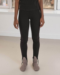 Product Details Recycled cotton leggings Elastic waistband Exposed seams Highwaist Elastic stirrups at hem Model wears a size S 60% Recycled Cotton 40% Cotton Made in Portugal Fiber origin – Portugal/Turkiye Spun in Spain Woven in Portugal Sewn in Portugal Material Recycled Cotton Origin: Portugal, Spain, India Certifications: GRS, Oeko-tex - Recycled cotton is made from pre-consumer textiles such as cotton scraps, factory offcuts, or deadstock from virgin cotton fabric production. - Recycled cotton is often paired with virgin cotton to improve the quality of the finished fabric, as recycled cotton often has lesser yarn strength. - Making recycled cotton uses less energy, dye, and water than virgin materials. - It also reduces the amount of fabric going into landfill and keeps materials in circulation for longer.