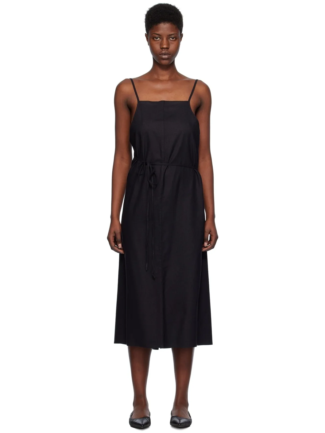 Plain-woven OEKO-TEX®-certified wild silk dress. · Wrap construction · Square neck · Self-tie fastening at waist · Fixed spaghetti straps · Low back Supplier color: Black