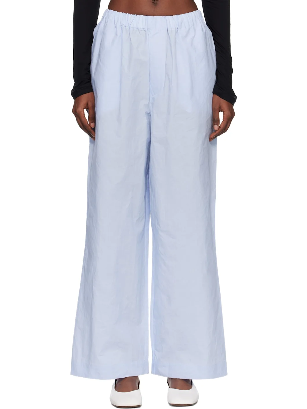 Cotton poplin lounge pants. · Wide-leg · Elasticized waistband · Two-pocket styling Supplier color: Sax Blue 100% cotton. Made in Japan 252922F086009