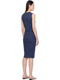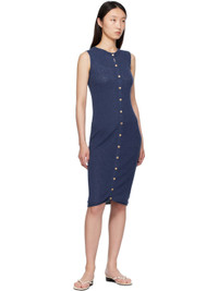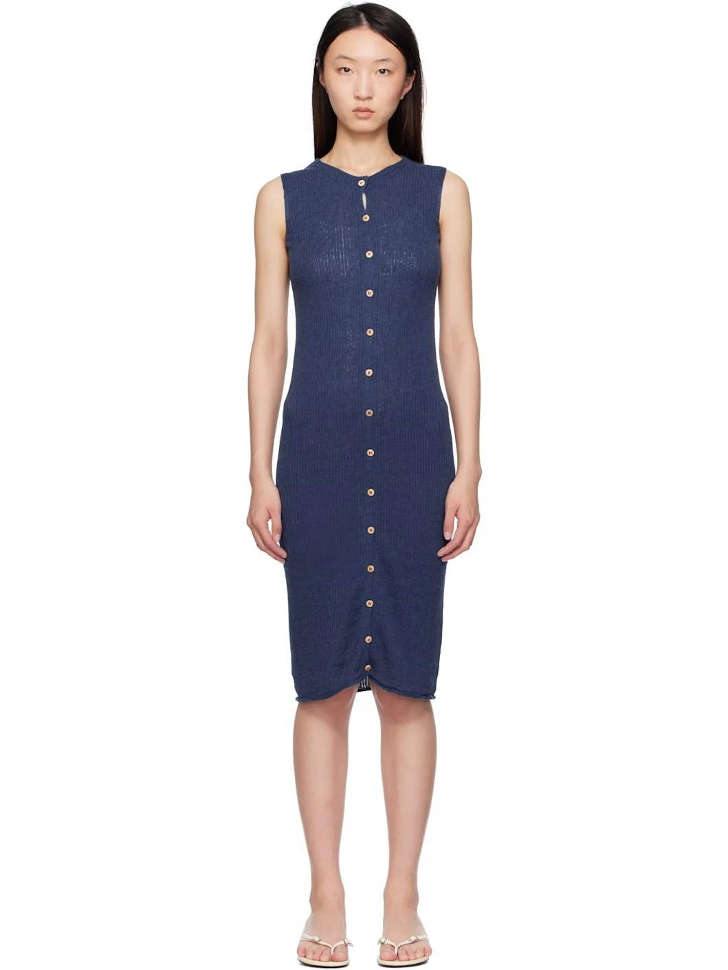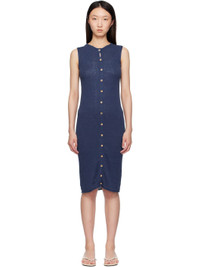 Rib-knit linen- and organic cotton-blend midi dress. · OEKO-TEX®-certified · Round neck · Button closure · Rolled edge at hem · Wood hardware Supplier color: Mez blue 55% linen, 30% organic cotton, 15% seacell. Made in France 251922F054009