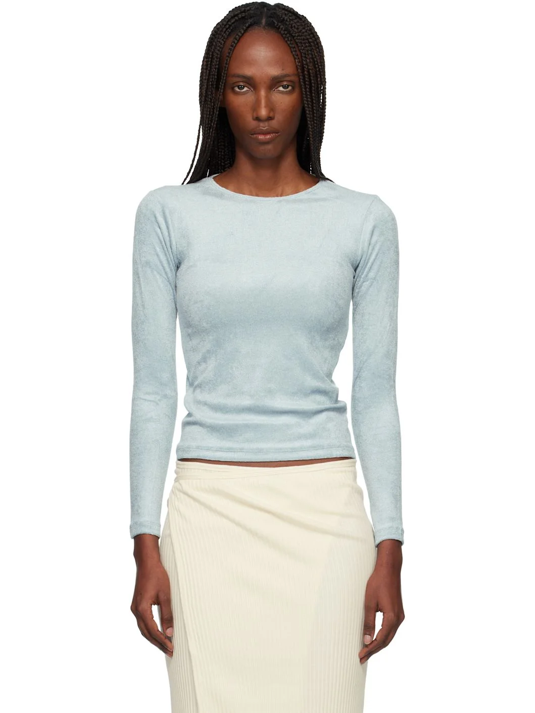 Recycled-blend velour T-shirt. Crewneck. Supplier color: Toom Grey 88% ecovero viscose, 12% recycled polyester. Made in Portugal 252922F110044