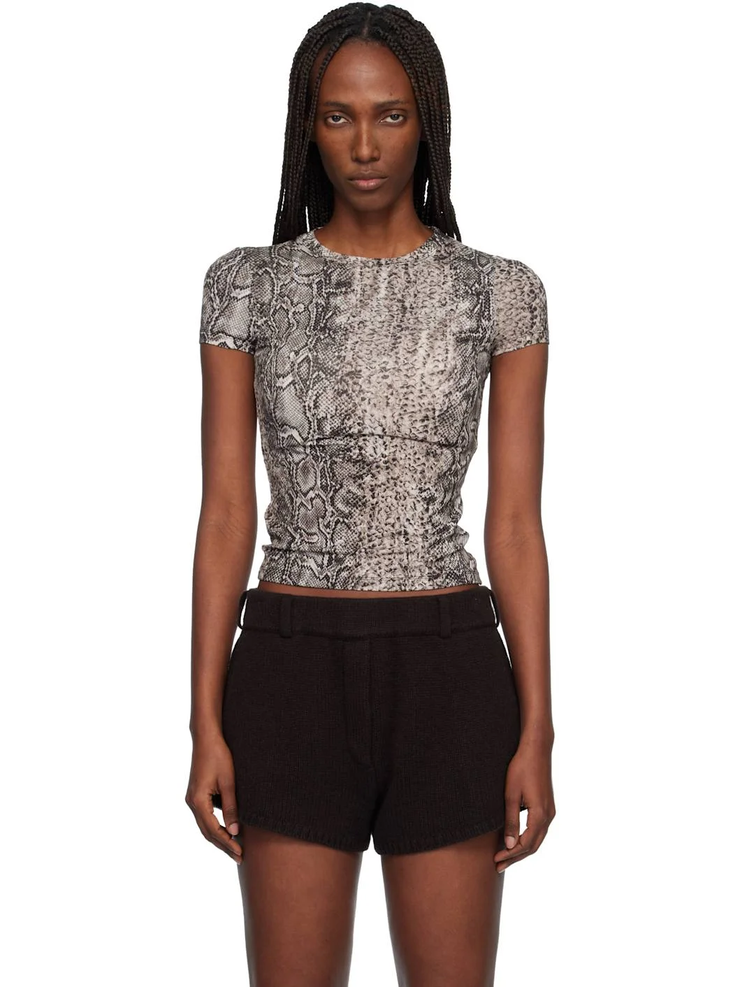 Stretch recycled jersey T-shirt. · Printed snakeskin pattern throughout · Crewneck Supplier color: Snake 95% circulose, 5% elastane. Made in Portugal 252922F110050