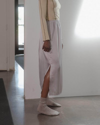 Product Details No return & exchange on sale products Silk satin skirt Elastic waistband Slits at side seams 96% Silk 4% Elastane Made in Turkiye Model wears a size S Material Silk Origin: China Certificates: Oeko-Tex - Silk from domesticated mulberry silkworms is a strong, naturally organic fiber. - Regulating body temperature and rich in protein and amino acids, silk is hydrating for skin and hair. Silk is also hypoallergenic and antibacterial. - Most silk that is produced is rain-fed. The Mulberry trees that are grown to feed silkworms sequester carbon from the atmosphere and require less water than cotton. - Silk doesn’t require harsh processing, soaking silk simply requires soap, soda and water. - The by-products of silk production are also utilised, with pupae being eaten by people or used as animal feed and sericin used in cosmetics and medicine. - Our silk comes from farms in China, where our fabric visits them regularly. - Communities that work with silk have created a cycle that feeds itself, where silk waste is given to feed the fishes in the ponds nearby, and the mud from those ponds is used to fertilise mulberry trees, which in turn feed the silkworms. - Sericulture or the silk industry has always employed rural populations, where most of the income goes back to the farmers.