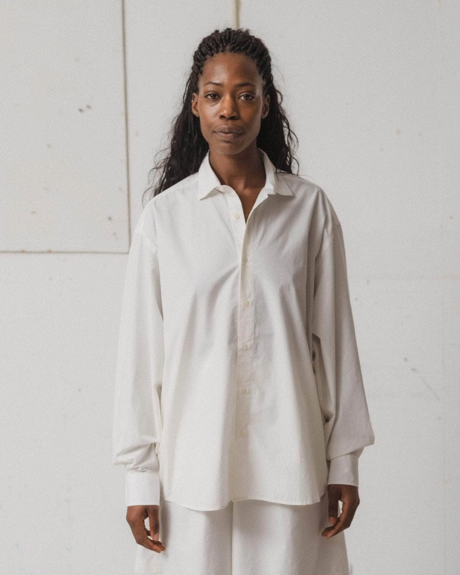 Product Details Organic cotton poplin shirt Button-up Curved hem Two buttons at cuff Button at sleeve placket Back yoke Wide cut Undyed Model wears a size S 100% Organic Cotton Made in Portugal Fiber origin – Turkiye Spun in Turkiye Woven in Portugal Sewn in Portugal Material Organic cotton Origin: Brazil, India, Egypt Certificates: GOTS, Oeko-Tex, OCS 100 - Cotton is a natural seed fiber. - It is durable, breathable, absorbent, and soft. Cotton is ideal for dyeing and printing. The material is also biodegradable and hypoallergenic. - Nearly all cotton is grown in rotation. Rotation crops help with pest management and soil structure. - Cotton stalks in most of the world are utilised almost entirely and seeds are essentially never wasted. - Baserange sources organic cotton, as we want to ensure that no harmful chemicals are used in the production process, water consumption is controlled, water is not contaminated and workers' rights are also preserved. - Organic agriculture uses agronomic, biological, and mechanical techniques instead of synthetic methods. - Organic cotton supports good soil health and ecosystems and is not harmful to human health or the environment. No pesticides or fertilizers are used. Most of the organic cotton we use is also rain-fed and doesn’t require much irrigation.