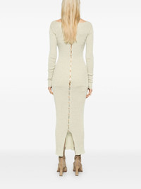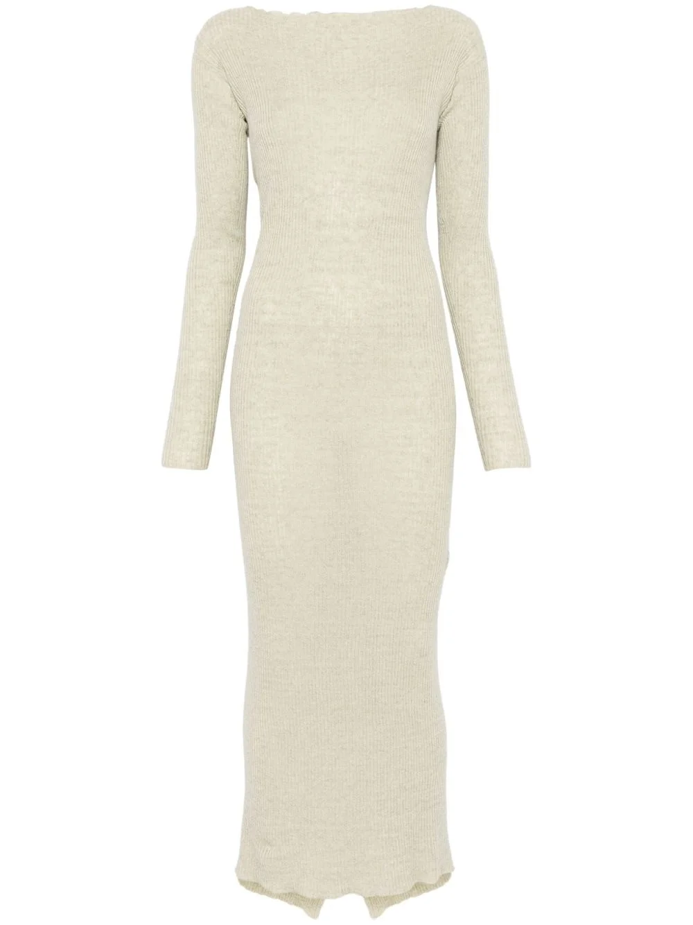 Dande maxi dress Highlights - Light olive green - Linen blend - Ribbed knit - Front button fastening - Round neck - Long sleeves - Fitted waistline - Unlined - Curved hem - Long length Made in France Composition Linen/Flax 55%, Organic Cotton 30%, SeaCell™ 15% SIZE & FIT Model measurements Height 5 ft 9 in(1.76 m) Bust/Chest 34.25 in(87 cm) Hips 35.82 in(91 cm) Waist 23.62 in(60 cm) FittingInformation Designed for a close fit throughout Made with a midweight knit, this piece offers some stretch Washing instructions Hand Wash