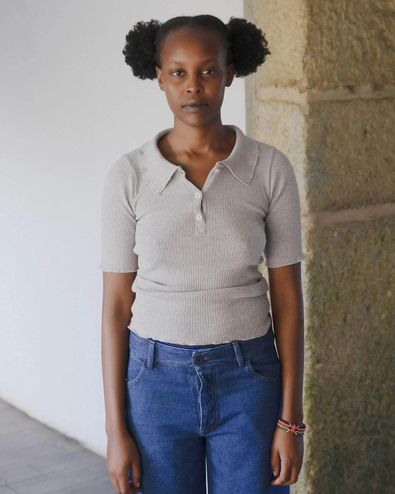 Product Details Recycled cotton rib polo Half button placket 3/4 sleeves 50% Recycled Cotton 50% Organic Cotton Made in Portugal Model wears a size S and is 161cm Material Recycled Cotton Origin: Portugal, Spain, India Certifications: GRS, Oeko-tex - Recycled cotton is made from pre-consumer textiles such as cotton scraps, factory offcuts, or deadstock from virgin cotton fabric production. - Recycled cotton is often paired with virgin cotton to improve the quality of the finished fabric, as recycled cotton often has lesser yarn strength. - Making recycled cotton uses less energy, dye, and water than virgin materials. - It also reduces the amount of fabric going into landfill and keeps materials in circulation for longer.