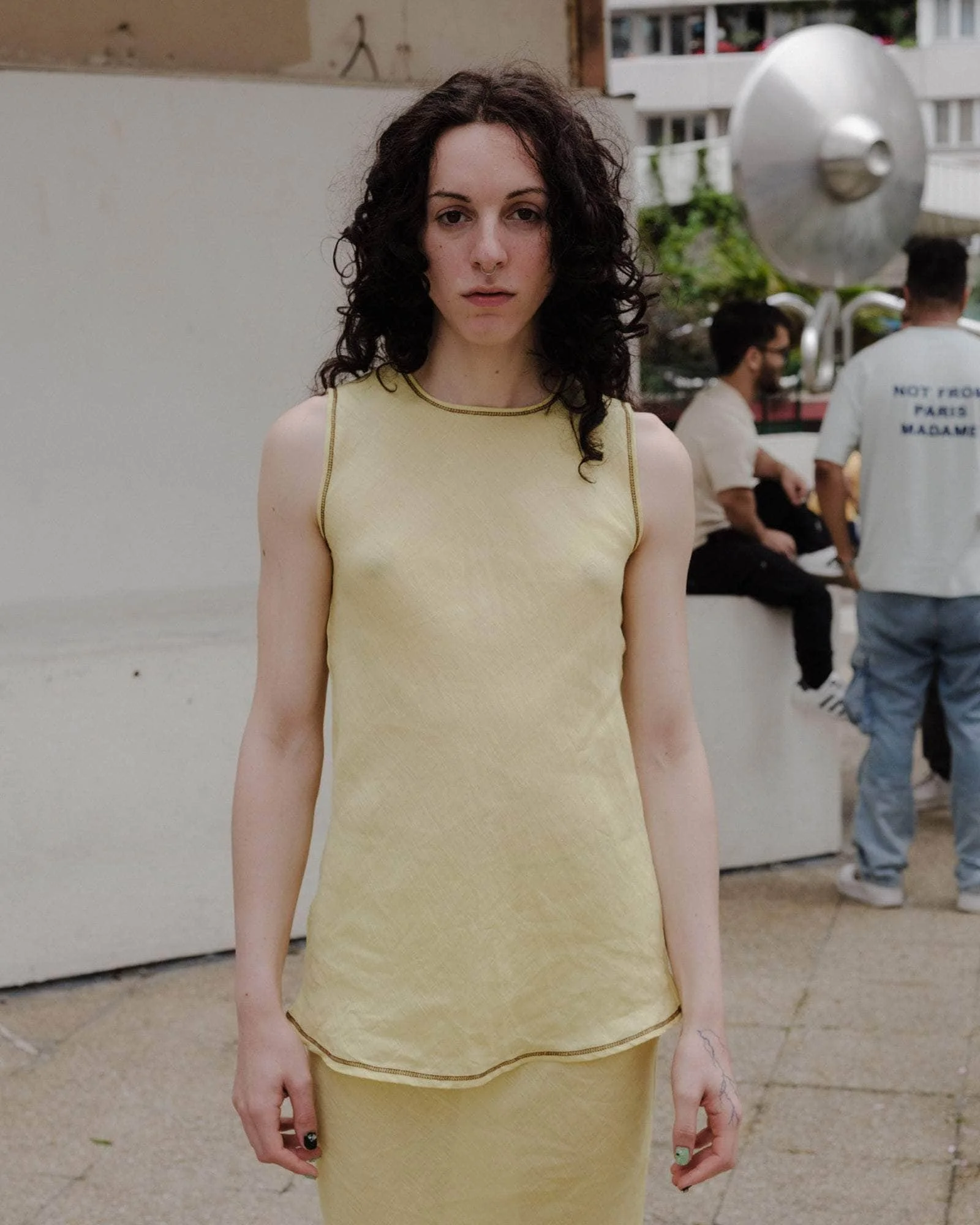 Product Details No return & exchange on Sale products Linen tank Slit and button at back Exposed contrast seams 100% Linen Made in Turkiye Model wears a size S Material Linen Origin: France, Belgium Certificates: Oeko-Tex - Linen is a bast fiber. - Linen requires no irrigation and can be grown even in poor soil. It requires no chemicals. - Linen is grown in rotation, nourishing the soil for other crops. It is also always non-GMO. - Today, it is one of the only textile fibers still grown in Europe. - A breathable fabric, linen is strong and absorbent. It’s more durable and dries faster than cotton. Its naturally cooling properties make it an appealing summer wear and layering option. - Linen production is almost zero waste and leftovers like flax dust can be used for insulation. The seeds can provide oil and the by-products of linen production can be processed into a pulp. - As linen fabric is said to get softer with age and each wash, having and caring for a linen garment for a long time is covetable.