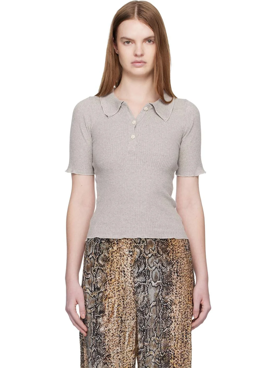 Organic cotton- and recycled cotton-blend ribber jersey polo. · Certified GRS and OEKO-TEX® · Spread collar · Three-button placket · Lettuce edge at hem and cuffs Supplier color: Grey Melange 50% organic cotton, 50% recycled cotton. Made in Portugal 252922F108002