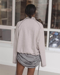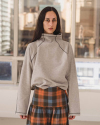 Product Details Recycled cotton fleece turtleneck Ribbed underarm insert and hem Exposed contrast seams Model wears a size S 50% Recycled Cotton 50% Organic Cotton Made in Portugal Fiber origin – Turkiye/Peru/Spain Spun in Spain Woven in Portugal Sewn in Portugal Material Recycled Cotton Origin: Portugal, Spain, India Certifications: GRS, Oeko-tex - Recycled cotton is made from pre-consumer textiles such as cotton scraps, factory offcuts, or deadstock from virgin cotton fabric production. - Recycled cotton is often paired with virgin cotton to improve the quality of the finished fabric, as recycled cotton often has lesser yarn strength. - Making recycled cotton uses less energy, dye, and water than virgin materials. - It also reduces the amount of fabric going into landfill and keeps materials in circulation for longer.