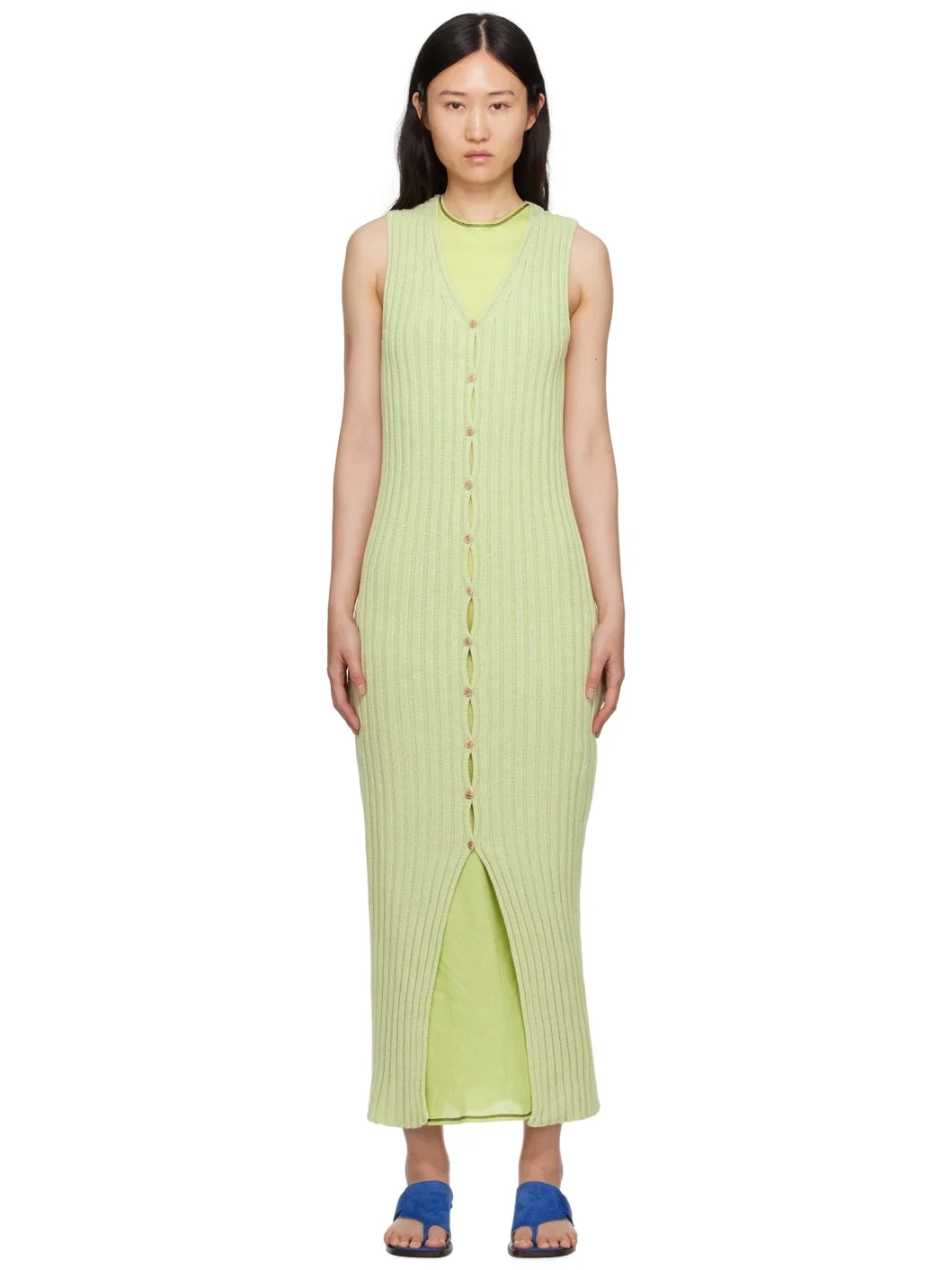 Rib knit organic cotton dress. GOTS-, OEKO-TEX®-, and OCS 100-certified. · Plunging V-neck · Button closure · Cutouts at front Supplier color: Mimosa 100% organic cotton. Made in France 241922F055003