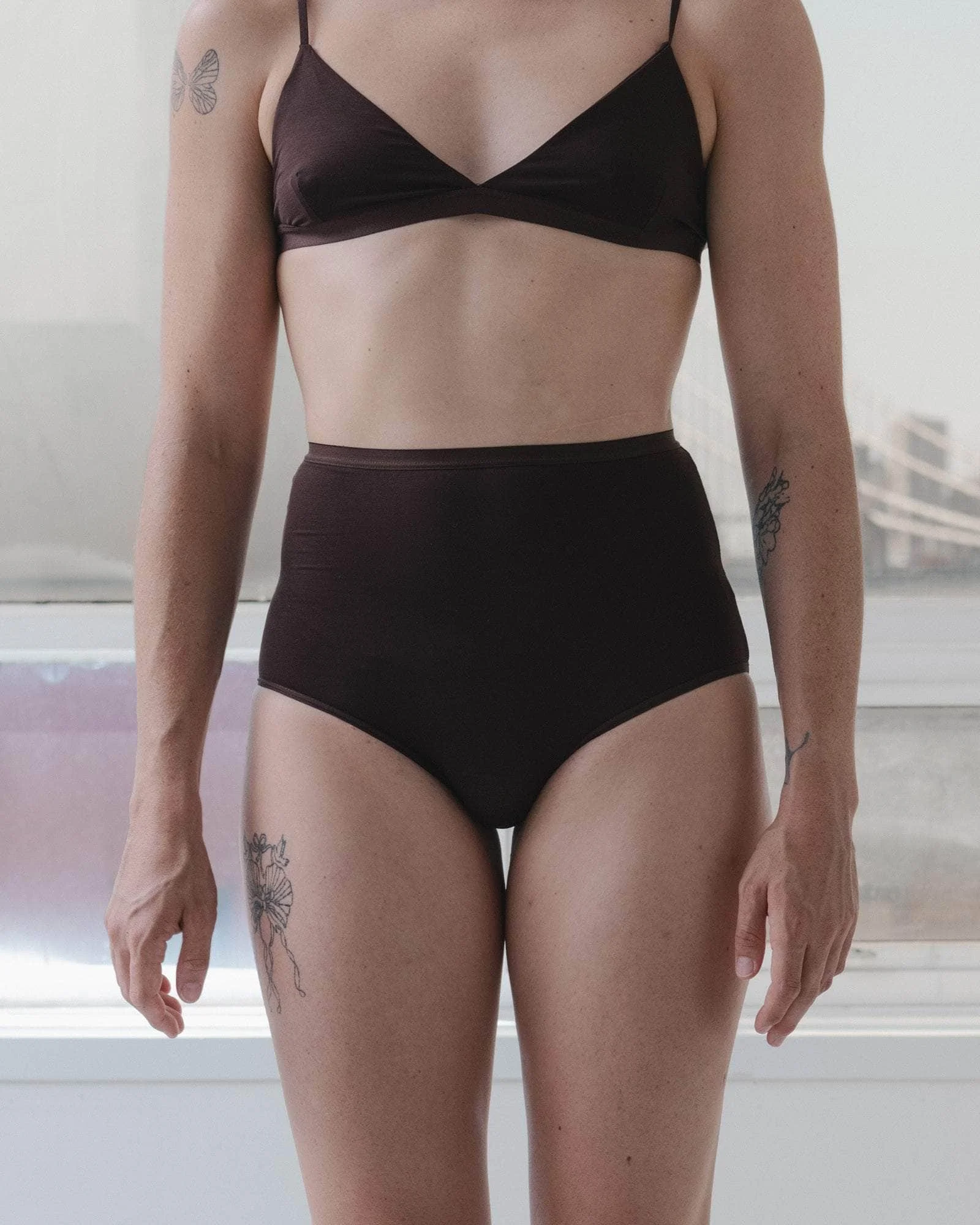 Product Details Bamboo lyocell underpant Highwaist Elastic trim at waist and leg Model wears a size S 93% Bamboo Lyocell 7% Elastane Made in Portugal Fiber origin – China Spun in Portugal/Brazil Knitted in Portugal Sewn in Portugal Material Lyocell Origin: China Certificates: FSC - Lyocell is a manmade fiber made of natural regenerated cellulose. - The lyocell process eliminates toxic chemicals and reactions and reduces air and water emissions. - Lyocell is made from traceable wood pulp harvested from FSC-certified farms. The farms have been established on land unsuitable for food crops or grazing. - Lyocell is made of eucalyptus or bamboo trees that don’t require irrigation or pesticides and grow fast. - Lyocell fiber production itself is more environmentally friendly than cotton due to its closed-loop process. This means that up to 99% of the water and solvents used are reused. - Manufacturing lyocell does not require bleach. - Lyocell fiber is stronger than viscose both when dry and wet. - Sea cell is a similar fiber made from seaweed and sea algae with therapeutic qualities.