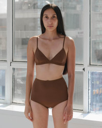 Product Details Bamboo lyocell underpant Highwaist Elastic trim at waist and leg Model wears a size S 93% Bamboo Lyocell 7% Elastane Made in Portugal Fiber origin – China Spun in Portugal/Brazil Knitted in Portugal Sewn in Portugal Material Lyocell Origin: China Certificates: FSC - Lyocell is a manmade fiber made of natural regenerated cellulose. - The lyocell process eliminates toxic chemicals and reactions and reduces air and water emissions. - Lyocell is made from traceable wood pulp harvested from FSC-certified farms. The farms have been established on land unsuitable for food crops or grazing. - Lyocell is made of eucalyptus or bamboo trees that don’t require irrigation or pesticides and grow fast. - Lyocell fiber production itself is more environmentally friendly than cotton due to its closed-loop process. This means that up to 99% of the water and solvents used are reused. - Manufacturing lyocell does not require bleach. - Lyocell fiber is stronger than viscose both when dry and wet. - Sea cell is a similar fiber made from seaweed and sea algae with therapeutic qualities.