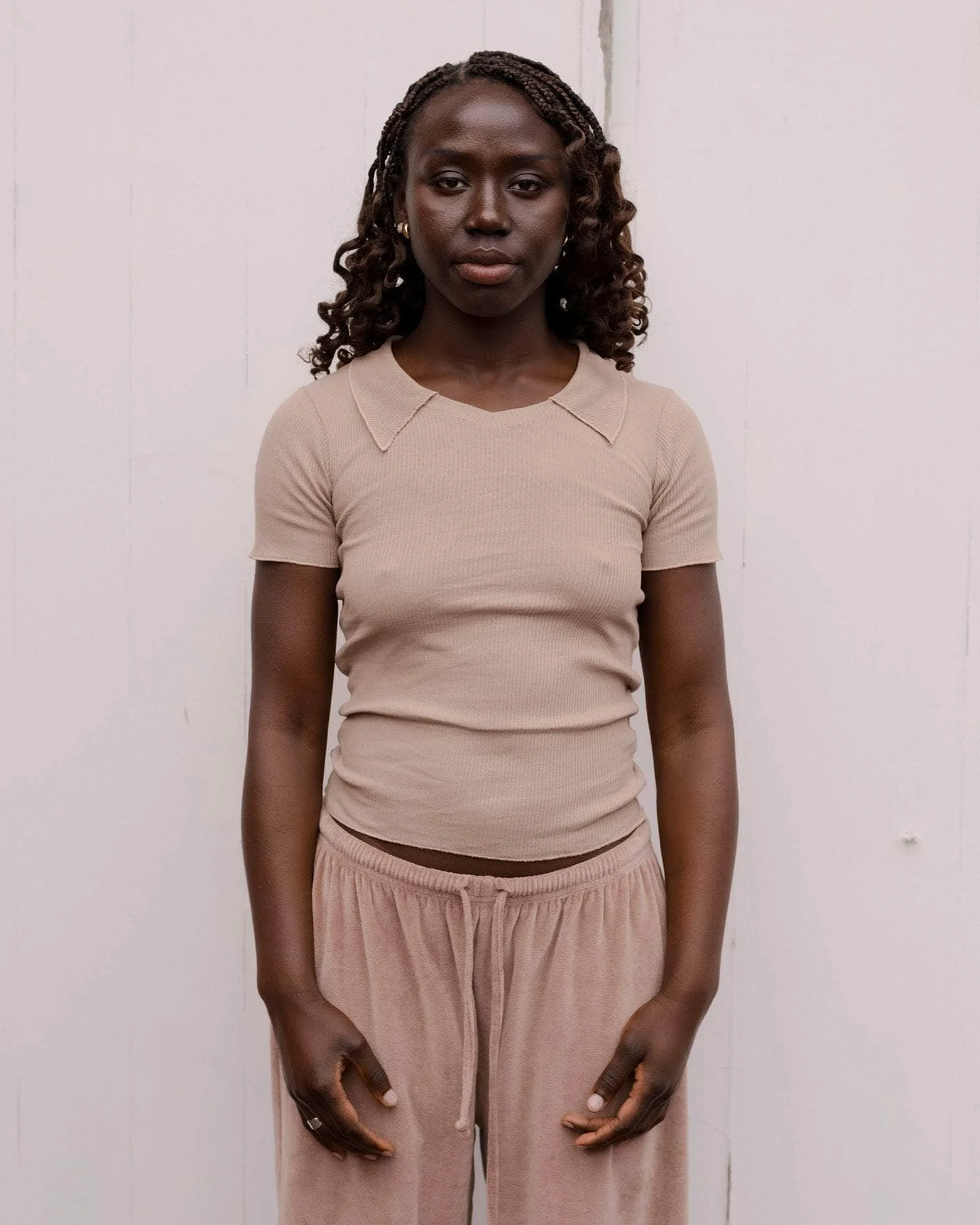Product Details Recycled cotton rib top V Neck with collar 3/4 sleeves Model wears a size S and is 167cm 50% Recycled Cotton 50% Organic Cotton Made in Portugal Fiber origin - Portugal/Turkiye Spun in Spain Knitted in Portugal Sewn in Portugal Material Recycled Cotton Origin: Portugal, Spain, India Certifications: GRS, Oeko-tex - Recycled cotton is made from pre-consumer textiles such as cotton scraps, factory offcuts, or deadstock from virgin cotton fabric production. - Recycled cotton is often paired with virgin cotton to improve the quality of the finished fabric, as recycled cotton often has lesser yarn strength. - Making recycled cotton uses less energy, dye, and water than virgin materials. - It also reduces the amount of fabric going into landfill and keeps materials in circulation for longer.