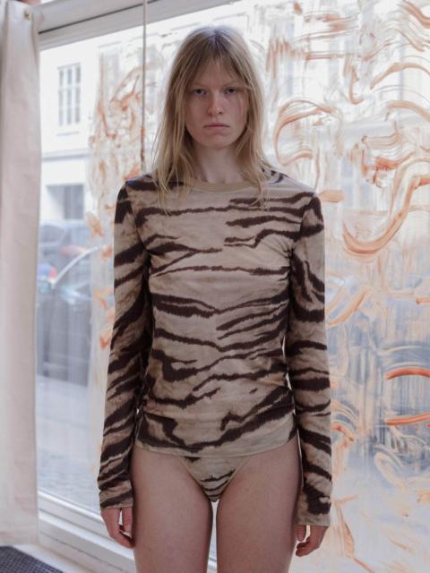 Product Details Bamboo lyocell long sleeve tee Crewneck 100% Bamboo Lyocell Made in Portugal Model wears a size S Material Lyocell Origin: China Certificates: FSC - Lyocell is a manmade fiber made of natural regenerated cellulose. - The lyocell process eliminates toxic chemicals and reactions and reduces air and water emissions. - Lyocell is made from traceable wood pulp harvested from FSC-certified farms. The farms have been established on land unsuitable for food crops or grazing. - Lyocell is made of eucalyptus or bamboo trees that don’t require irrigation or pesticides and grow fast. - Lyocell fiber production itself is more environmentally friendly than cotton due to its closed-loop process. This means that up to 99% of the water and solvents used are reused. - Manufacturing lyocell does not require bleach. - Lyocell fiber is stronger than viscose both when dry and wet. - Sea cell is a similar fiber made from seaweed and sea algae with therapeutic qualities.