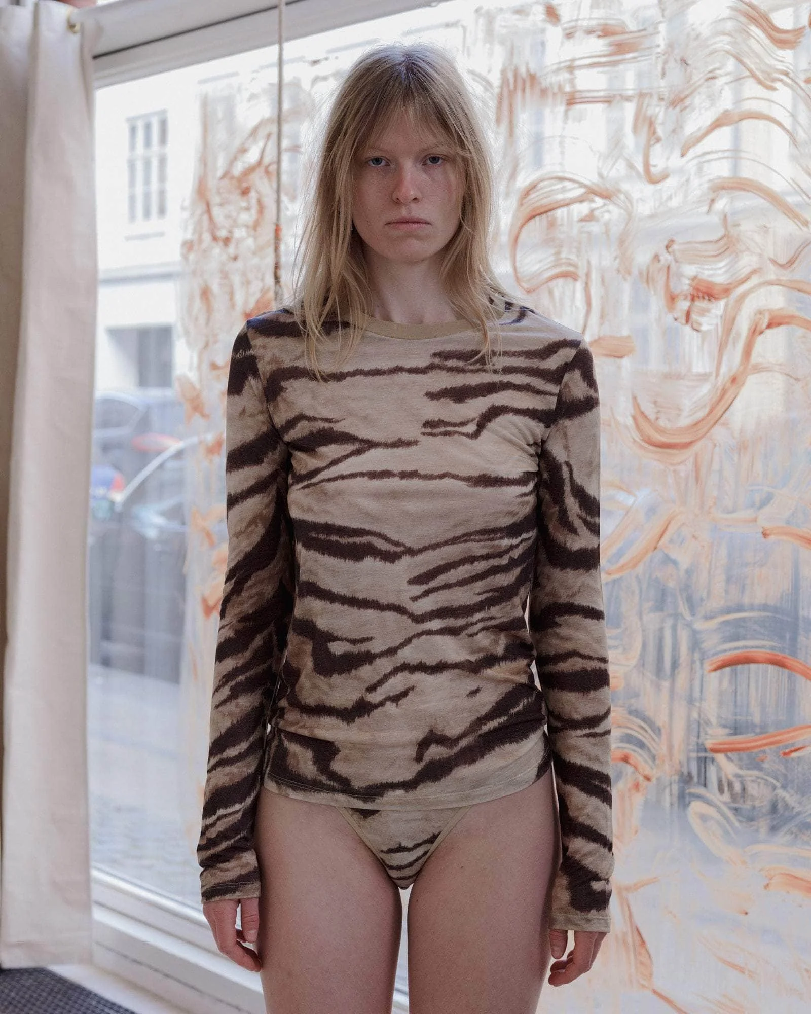 Product Details Bamboo lyocell long sleeve tee Crewneck 100% Bamboo Lyocell Made in Portugal Model wears a size S Material Lyocell Origin: China Certificates: FSC - Lyocell is a manmade fiber made of natural regenerated cellulose. - The lyocell process eliminates toxic chemicals and reactions and reduces air and water emissions. - Lyocell is made from traceable wood pulp harvested from FSC-certified farms. The farms have been established on land unsuitable for food crops or grazing. - Lyocell is made of eucalyptus or bamboo trees that don’t require irrigation or pesticides and grow fast. - Lyocell fiber production itself is more environmentally friendly than cotton due to its closed-loop process. This means that up to 99% of the water and solvents used are reused. - Manufacturing lyocell does not require bleach. - Lyocell fiber is stronger than viscose both when dry and wet. - Sea cell is a similar fiber made from seaweed and sea algae with therapeutic qualities.