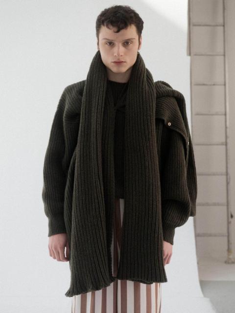 Product Details Recycled wool ribbed knit scarf 70% Recycled Wool 25% Polyamide 5% Other Made in France Material Recycled Wool Origin: France Certifications: GRS, Oeko-tex - Our recycled wool comes from a recycling factory close to our knitting mill in Occitania, France. - The factory mostly works with recycled wool made of old, used wool clothing from the collection bins of local charities. - Working with recycled wool ahead of many others allowed the factory to continue its operations and produce local materials. - Wool is the most recycled fiber and was the first fiber to be recycled. - Wool has the potential to last at least 30 years and be recycled up to six times. - Recycling wool results in reduced methane emissions from sheep, reduced land use and water pollution from washing wool. - The wool we use is recycled in a closed loop system, meaning fibers are turned into yarn to create new products of similar quality and use to the original.