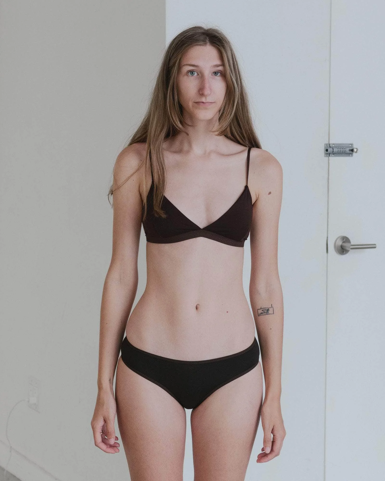 Product Details Bamboo lyocell bra Darts at chest Thin elastic trim at hem Thin adjustable straps Self lined Supportive for medium and small bust Model wears a size S 93% Bamboo Lyocell 7% Elastane Made in Portugal Fiber origin – China Spun in Portugal/Brazil Knitted in Portugal Sewn in Portugal Material Lyocell Origin: China Certificates: FSC - Lyocell is a manmade fiber made of natural regenerated cellulose. - The lyocell process eliminates toxic chemicals and reactions and reduces air and water emissions. - Lyocell is made from traceable wood pulp harvested from FSC-certified farms. The farms have been established on land unsuitable for food crops or grazing. - Lyocell is made of eucalyptus or bamboo trees that don’t require irrigation or pesticides and grow fast. - Lyocell fiber production itself is more environmentally friendly than cotton due to its closed-loop process. This means that up to 99% of the water and solvents used are reused. - Manufacturing lyocell does not require bleach. - Lyocell fiber is stronger than viscose both when dry and wet. - Sea cell is a similar fiber made from seaweed and sea algae with therapeutic qualities.