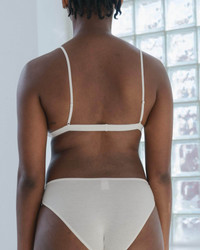 Product Details Bamboo lyocell bra Darts at chest Thin elastic trim at hem Thin adjustable straps Self lined Supportive for medium and small bust Undyed Model wears a size M 93% Bamboo Lyocell 7% Elastane Made in Portugal Fiber origin – China Spun in Portugal/Brazil Knitted in Portugal Sewn in Portugal Material Lyocell Origin: China Certificates: FSC - Lyocell is a manmade fiber made of natural regenerated cellulose. - The lyocell process eliminates toxic chemicals and reactions and reduces air and water emissions. - Lyocell is made from traceable wood pulp harvested from FSC-certified farms. The farms have been established on land unsuitable for food crops or grazing. - Lyocell is made of eucalyptus or bamboo trees that don’t require irrigation or pesticides and grow fast. - Lyocell fiber production itself is more environmentally friendly than cotton due to its closed-loop process. This means that up to 99% of the water and solvents used are reused. - Manufacturing lyocell does not require bleach. - Lyocell fiber is stronger than viscose both when dry and wet. - Sea cell is a similar fiber made from seaweed and sea algae with therapeutic qualities.