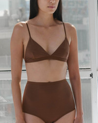 Product Details Bamboo lyocell bra Darts at chest Thin elastic trim at hem Thin adjustable straps Self lined Supportive for medium and small bust Model wears a size M 93% Bamboo Lyocell 7% Elastane Made in Portugal Fiber origin – China Spun in Portugal/Brazil Knitted in Portugal Sewn in Portugal Material Lyocell Origin: China Certificates: FSC - Lyocell is a manmade fiber made of natural regenerated cellulose. - The lyocell process eliminates toxic chemicals and reactions and reduces air and water emissions. - Lyocell is made from traceable wood pulp harvested from FSC-certified farms. The farms have been established on land unsuitable for food crops or grazing. - Lyocell is made of eucalyptus or bamboo trees that don’t require irrigation or pesticides and grow fast. - Lyocell fiber production itself is more environmentally friendly than cotton due to its closed-loop process. This means that up to 99% of the water and solvents used are reused. - Manufacturing lyocell does not require bleach. - Lyocell fiber is stronger than viscose both when dry and wet. - Sea cell is a similar fiber made from seaweed and sea algae with therapeutic qualities.