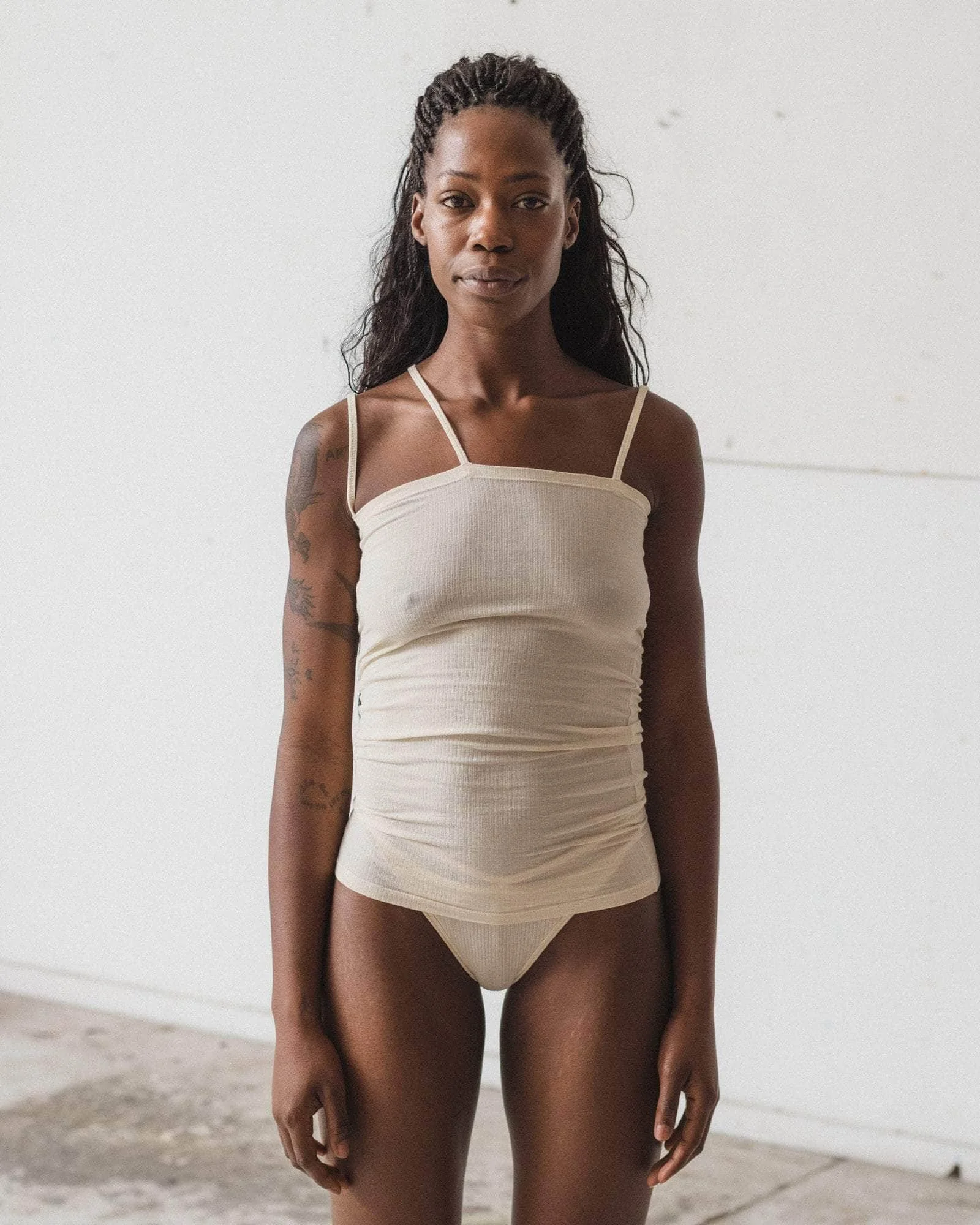 Product Details Fine cotton rib tank Thin shoulder straps and third asymmetrical strap Model wears size S and is 173cm 91% Organic Cotton 9% Elastane Made in Portugal Fiber origin – Turkiye Spun in Turkiye Woven in Portugal Sewn in Portugal Material Organic cotton Origin: Brazil, India, Egypt Certificates: GOTS, Oeko-Tex, OCS 100 - Cotton is a natural seed fiber. - It is durable, breathable, absorbent, and soft. Cotton is ideal for dyeing and printing. The material is also biodegradable and hypoallergenic. - Nearly all cotton is grown in rotation. Rotation crops help with pest management and soil structure. - Cotton stalks in most of the world are utilised almost entirely and seeds are essentially never wasted. - Baserange sources organic cotton, as we want to ensure that no harmful chemicals are used in the production process, water consumption is controlled, water is not contaminated and workers' rights are also preserved. - Organic agriculture uses agronomic, biological, and mechanical techniques instead of synthetic methods. - Organic cotton supports good soil health and ecosystems and is not harmful to human health or the environment. No pesticides or fertilizers are used. Most of the organic cotton we use is also rain-fed and doesn’t require much irrigation.