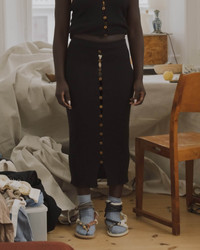 Product Details Linen knit button down skirt Elastic ribbed waistband Wood buttons down center front Lettuce edge at hem Model wears a size S and is 167cm 55% Linen 30% Organic Cotton 15% Seacell Made in France Fiber origin - France/India/Austria Spun in France/Germany Knitted in France Material Linen Origin: France, Belgium Certificates: Oeko-Tex - Linen is a bast fiber. - Linen requires no irrigation and can be grown even in poor soil. It requires no chemicals. - Linen is grown in rotation, nourishing the soil for other crops. It is also always non-GMO. - Today, it is one of the only textile fibers still grown in Europe. - A breathable fabric, linen is strong and absorbent. It’s more durable and dries faster than cotton. Its naturally cooling properties make it an appealing summer wear and layering option. - Linen production is almost zero waste and leftovers like flax dust can be used for insulation. The seeds can provide oil and the by-products of linen production can be processed into a pulp. - As linen fabric is said to get softer with age and each wash, having and caring for a linen garment for a long time is covetable.