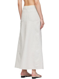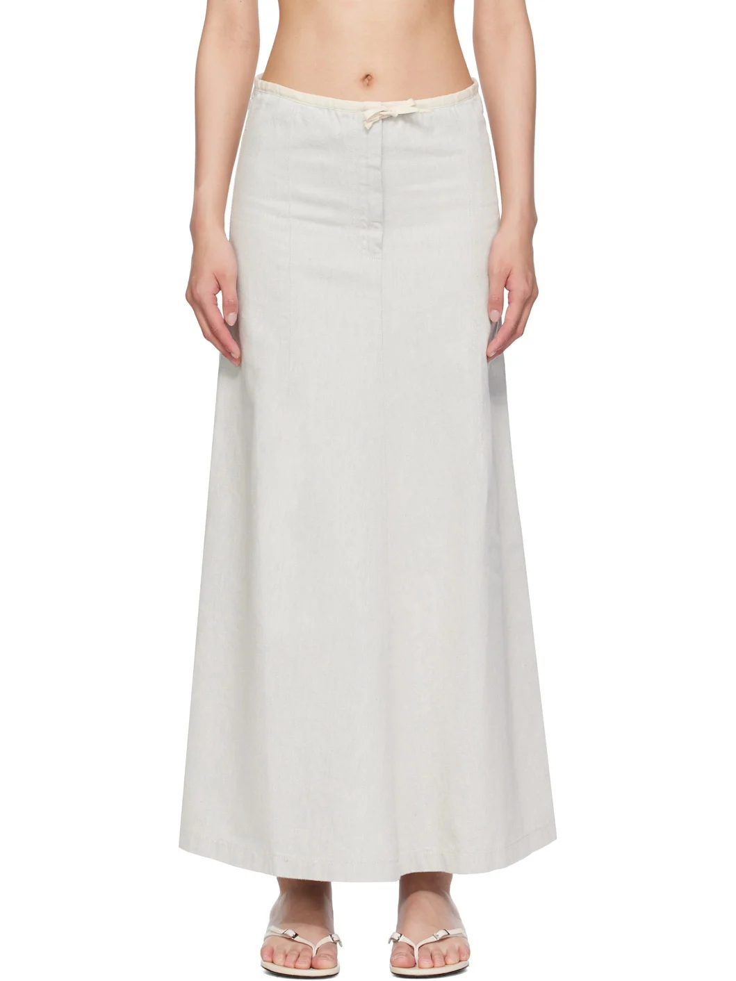 Non-stretch regenerative cotton- and recycled cotton-blend denim maxi skirt. · OEKO-TEX®-certified · Drawstring at canvas waistband · Two-pocket styling · Zip fly · Flared hem Supplier color: Ecru denim 70% regenerative cotton, 30% recycled cotton. Made in Portugal 251922F093007