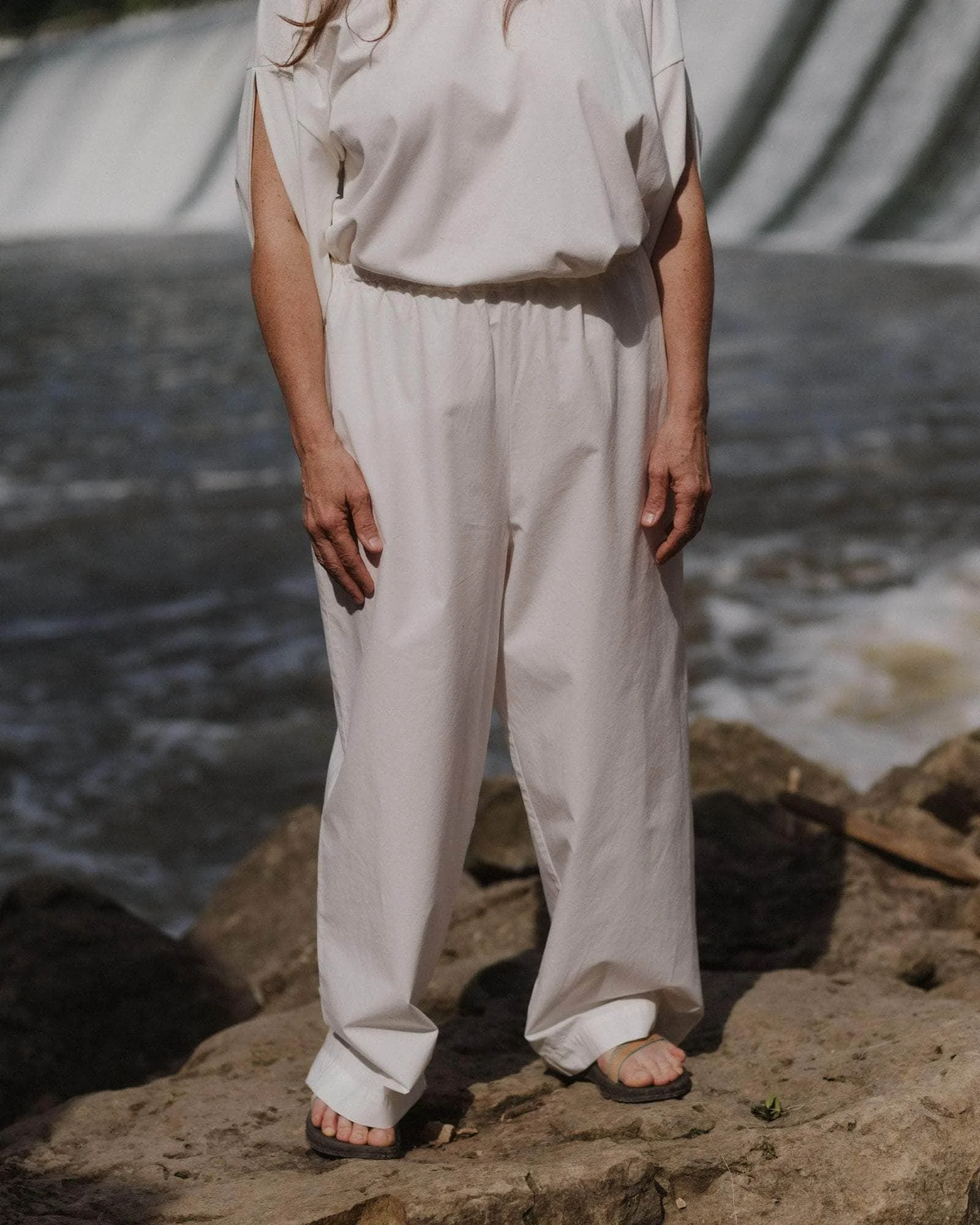 Product Details Organic cotton poplin pants Elastic waistband High-rise 100% Organic Cotton Made in Portugal Model wears a size S Material Organic cotton Origin: Brazil, India, Egypt Certificates: GOTS, Oeko-Tex, OCS 100 - Cotton is a natural seed fiber. - It is durable, breathable, absorbent, and soft. Cotton is ideal for dyeing and printing. The material is also biodegradable and hypoallergenic. - Nearly all cotton is grown in rotation, but conventional cotton generally has a higher environmental impact. - Baserange sources organic cotton, as we want to ensure that no harmful chemicals are used in the production process, water consumption is controlled, water is not contaminated and workers' rights are also preserved. - Organic agriculture uses agronomic, biological, and mechanical techniques instead of synthetic chemicals. - Organic cotton supports good soil health and ecosystems and is not harmful to human health or the environment. No pesticides or fertilizers are used. Most of the organic cotton we use is also rain-fed and doesn’t require much irrigation.