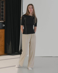 Product Details Organic cotton rib ¾ length sleeve tee Boatneck Exposed seams Lettuce edge at neckline and hems Runs small, consider sizing up 91% Organic Cotton 9% Elastane Made in Portugal Model wears a size S Material Organic cotton Origin: Brazil, India, Egypt Certificates: GOTS, Oeko-Tex, OCS 100 - Cotton is a natural seed fiber. - It is durable, breathable, absorbent, and soft. Cotton is ideal for dyeing and printing. The material is also biodegradable and hypoallergenic. - Nearly all cotton is grown in rotation. Rotation crops help with pest management and soil structure. - Cotton stalks in most of the world are utilised almost entirely and seeds are essentially never wasted. - Baserange sources organic cotton, as we want to ensure that no harmful chemicals are used in the production process, water consumption is controlled, water is not contaminated and workers' rights are also preserved. - Organic agriculture uses agronomic, biological, and mechanical techniques instead of synthetic methods. - Organic cotton supports good soil health and ecosystems and is not harmful to human health or the environment. No pesticides or fertilizers are used. Most of the organic cotton we use is also rain-fed and doesn’t require much irrigation.