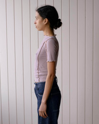 Product Details Organic cotton rib ¾ length sleeve tee Boatneck Exposed seams Lettuce edge at neckline and hems Runs small, consider sizing up Model wears a size S 91% Organic Cotton 9% Elastane Made in Portugal Fiber origin - India/South Korea Spun in India/Turkiye Knitted in Portugal Sewn in Portugal Material Organic cotton Origin: Brazil, India, Egypt Certificates: GOTS, Oeko-Tex, OCS 100 - Cotton is a natural seed fiber. - It is durable, breathable, absorbent, and soft. Cotton is ideal for dyeing and printing. The material is also biodegradable and hypoallergenic. - Nearly all cotton is grown in rotation, but conventional cotton generally has a higher environmental impact. - Baserange sources organic cotton, as we want to ensure that no harmful chemicals are used in the production process, water consumption is controlled, water is not contaminated and workers' rights are also preserved. - Organic agriculture uses agronomic, biological, and mechanical techniques instead of synthetic chemicals. - Organic cotton supports good soil health and ecosystems and is not harmful to human health or the environment. No pesticides or fertilizers are used. Most of the organic cotton we use is also rain-fed and doesn’t require much irrigation.